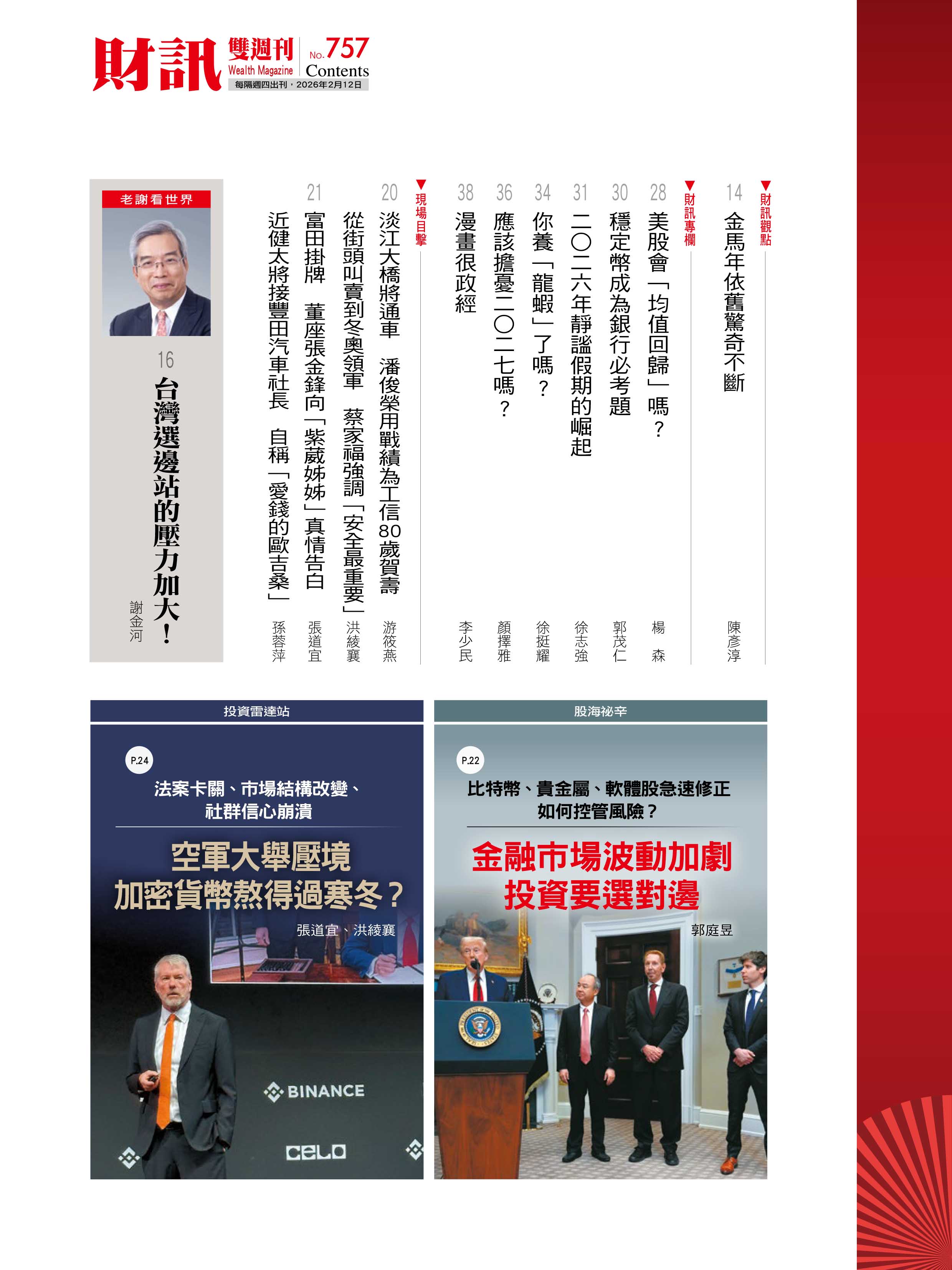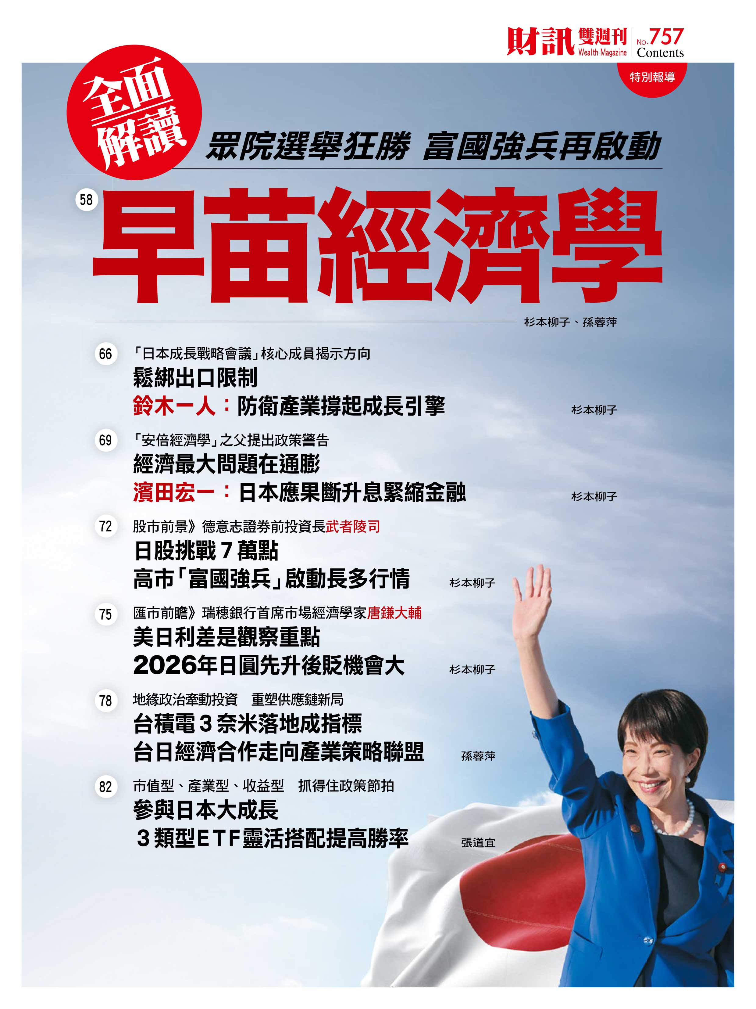 金馬年是AI產業步上黃金成長軌道之際,《財訊》獨家編製AI 50好股,持續分享AI盛宴的兆元商機。高市早苗領導的自民黨在眾議院改選大獲全勝,未來,在高市強勢主政下,日本經濟及股匯市會怎麼走?