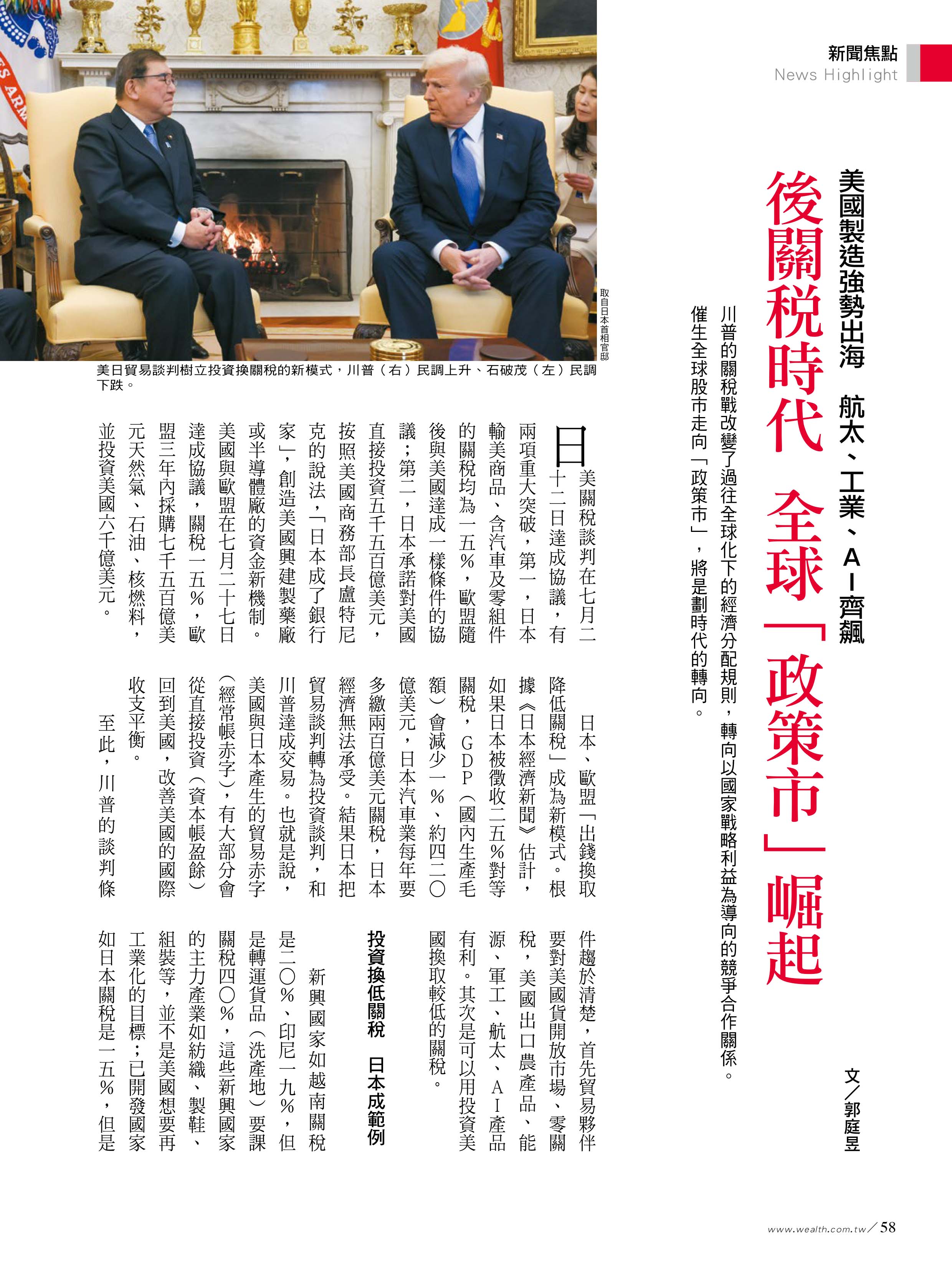 》後關稅時代 全球「政策市」崛起 美國製造強勢出海 航太、工業、AI齊飆